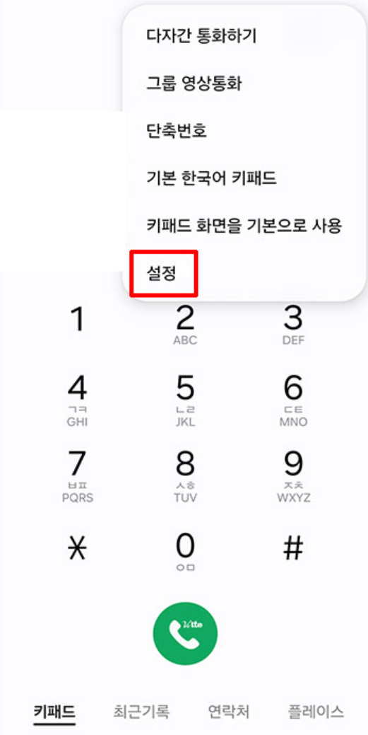 화면 우측 상단에 위치한 메뉴(⋮) 아이콘을 선택한 후, 설정 메뉴로 진입합니다.