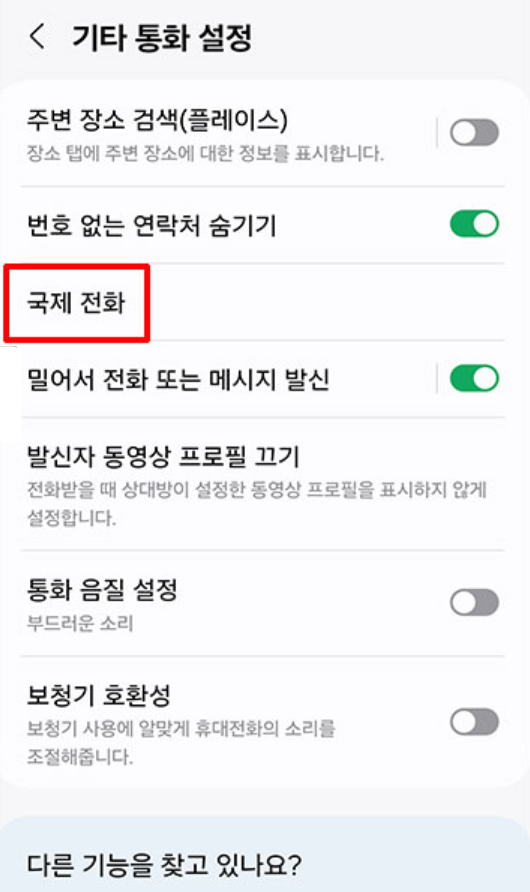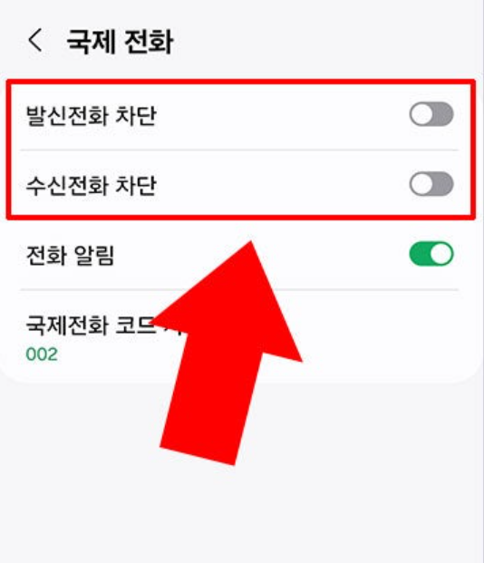 '국제 전화' 항목을 찾아 선택한 후, 수신 전화 차단 옵션을 활성화합니다. 이때 발신 차단도 함께 설정하면 더욱 안전합니다.