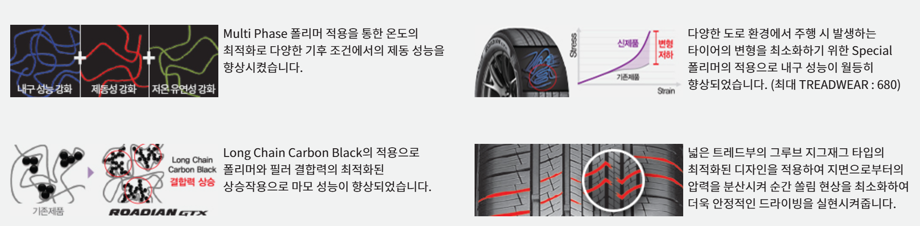 넥센 로디안 GTX는 현대적인 SUV와 크로스오버 차량을 위한 프리미엄 올시즌 타이어로서, 우수한 성능과 편안한 승차감을 동시에 제공합니다.