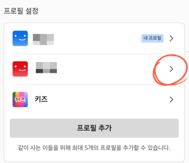 - 프로필 및 자녀 보호 설정에서 원하는 프로필을 선택합니다.