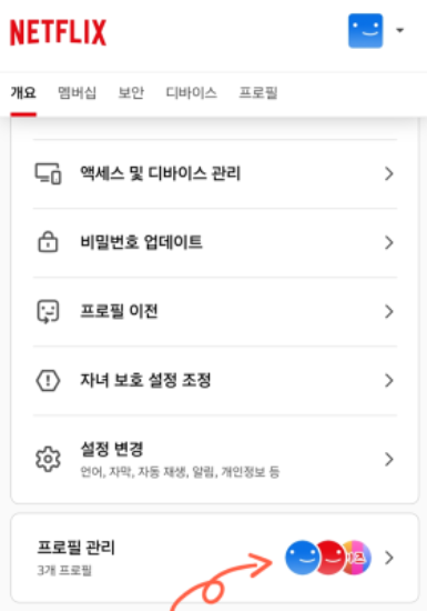 - 프로필 및 자녀 보호 설정에서 원하는 프로필을 선택합니다.