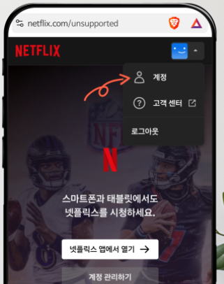 - 모바일 브라우저로 넷플릭스 웹사이트(netflix.com)에 접속합니다.