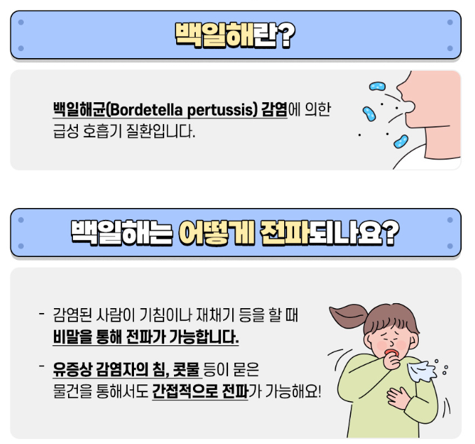 백일해는 매우 강한 전염성을 가진 호흡기 질환으로, 감염자의 기침이나 재채기를 통해 쉽게 전파됩니다.