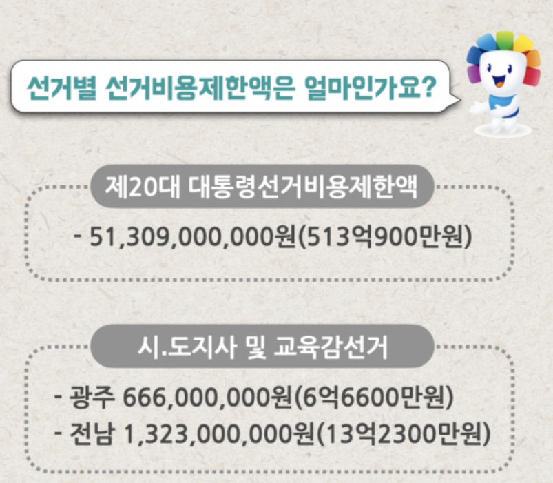 대통령 선거비용 선거기탁금 선거 보조금 출마 비용 금액 선관위