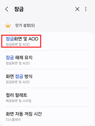 1. 잠금 화면 및 AOD 설정: 설정 메뉴에서 "잠금 화면 및 AOD"를 검색하고 선택합니다.