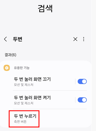 2. 두 번 누르기 검색: 상단 검색창에 "두 번 누르기"를 입력하고 검색합니다.