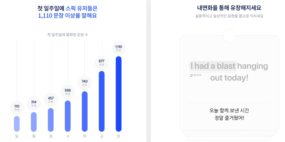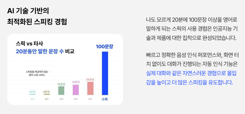 - AI 스픽튜터: 언제든지 질문하고 답변할 수 있는 인공지능 튜터가 있어 학습 도중 궁금한 점을 바로 해결할 수 있습니다.