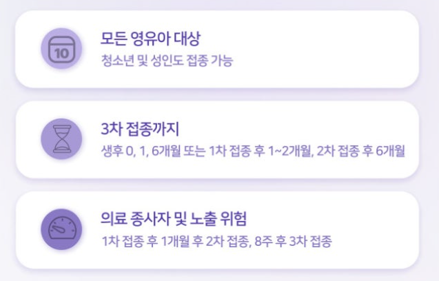 신생아의 B형간염 예방을 위해서는 정확한 시기에 맞춘 예방접종이 매우 중요합니다. 예방접종은 다음과 같은 일정으로 총 3회 실시됩니다.