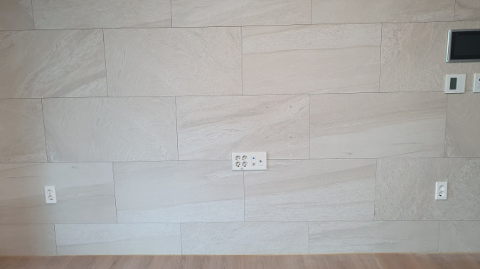 둘째, 그라인더를 이용해 타일 또는 대리석을 정교하게 절단합니다. 이 과정에서 아트월이 손상되지 않도록 세심한 주의가 필요합니다.