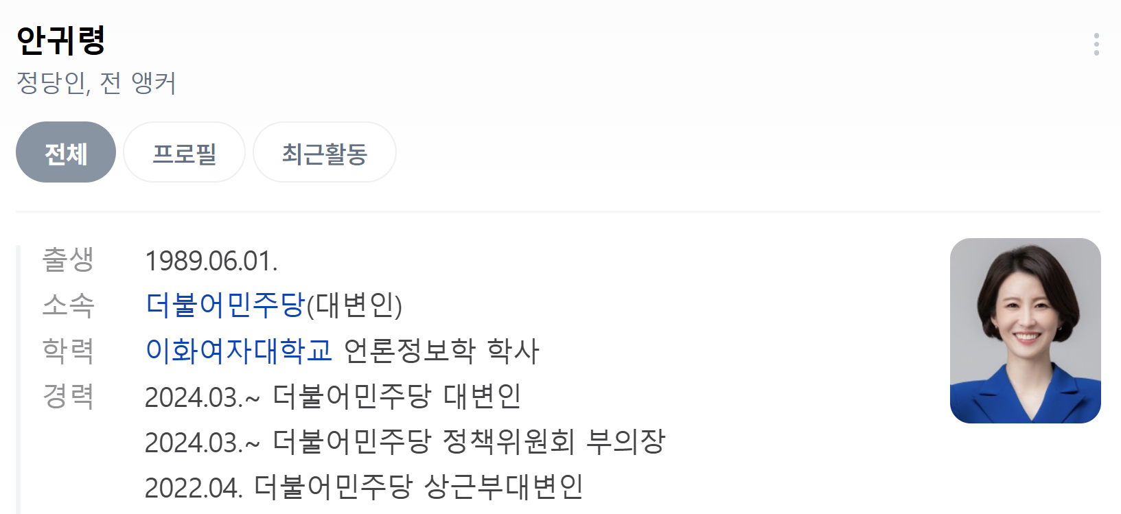 1. 안귀령 소개
