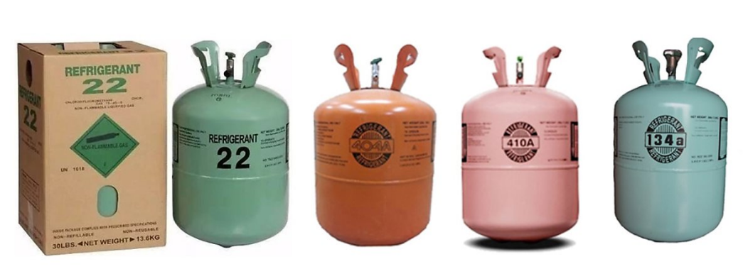에어컨에서 사용되는 냉매에는 여러 종류가 있으며, 대표적으로 R-22, R-410, R-32가 사용됩니다. R-22는 프레온 가스 계열로, 과거에 많이 사용되었으나 오존층 파괴 물질로 규제되고 있습니다.