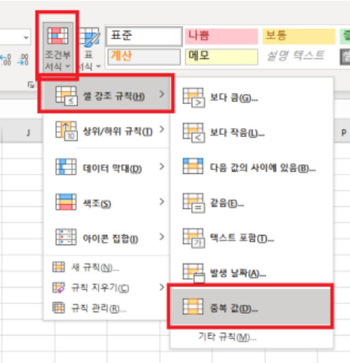 엑셀 중복값 제거 중복 데이터 사전방지 조건부 서식