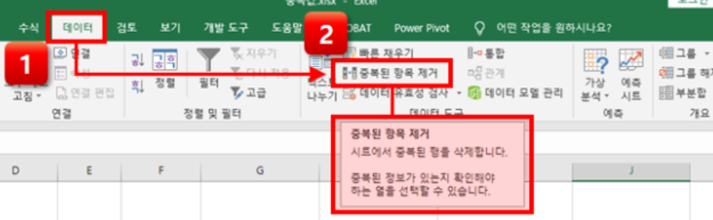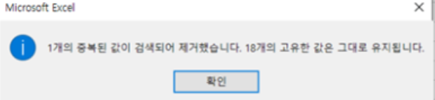 엑셀 중복값 제거