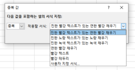 4. 중복값에 적용할 서식(색상, 글꼴 등)을 지정합니다