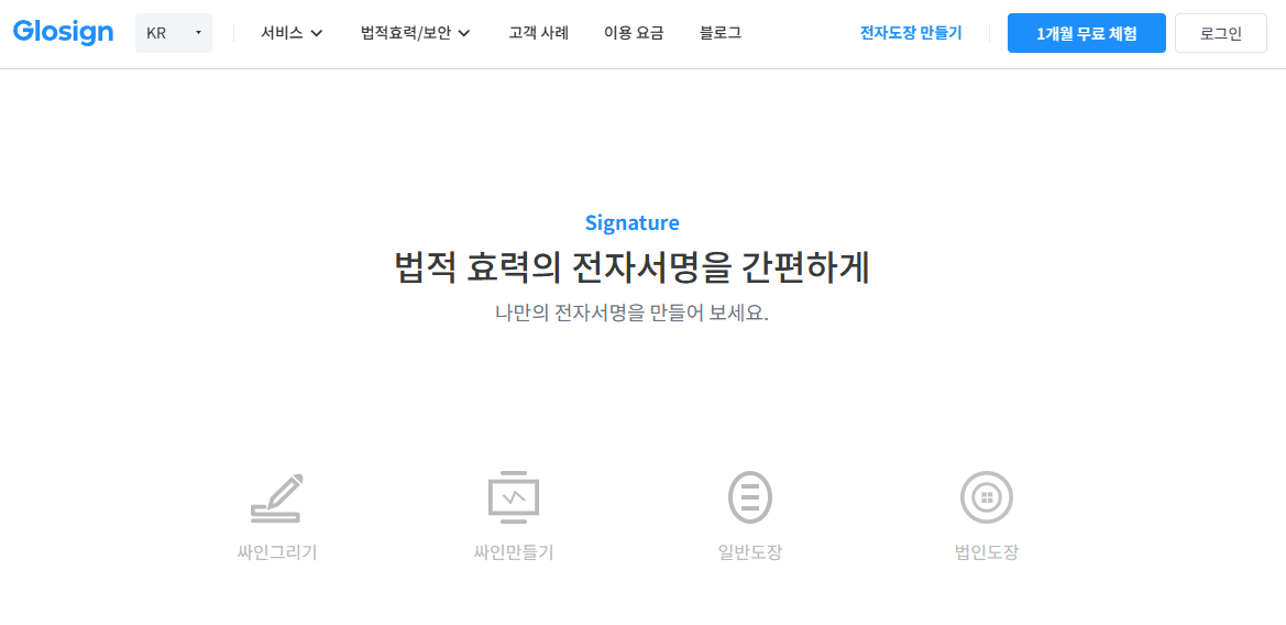 글로싸인은 회원가입 없이 무료로 이용할 수 있는 전자 서명 제작 서비스입니다. 이 플랫폼은 총 4가지의 다양한 옵션을 제공하고 있습니다.