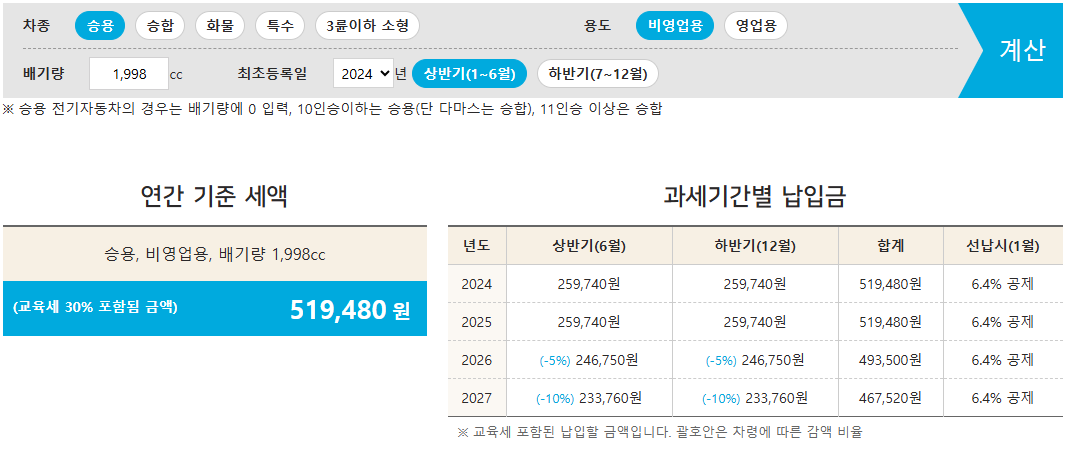 1. 차종별 자동차세 계산방법