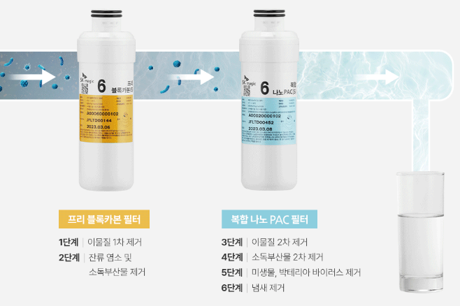 만약 배관이 노후화되거나 높은 정수 능력을 원하신다면 중금속 제거를 조금 더 높여주는 나노 필터를 추천드립니다.