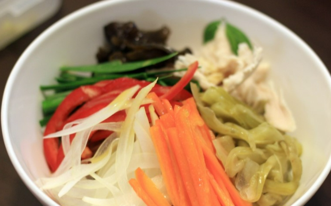 채소 손질은 초계탕의 맛을 좌우하는 중요한 과정입니다.