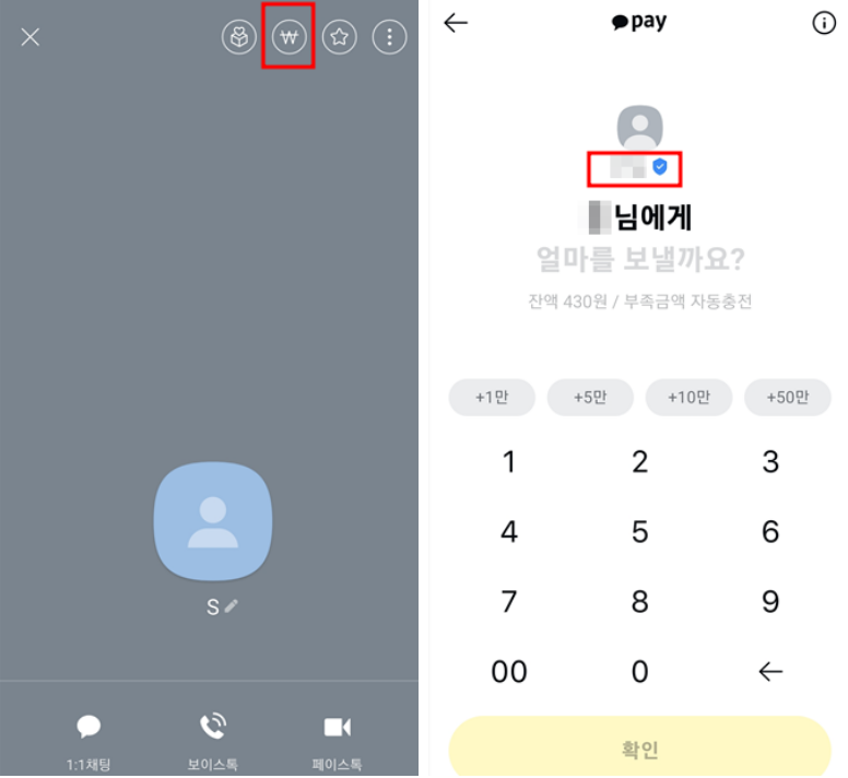 이 화면에서 상대방의 이름을 확인할 수 있습니다. 송금 화면에는 상대방의 실명이 표시되기 때문에 이를 통해 그 사람의 실제 이름을 알아낼 수 있습니다.