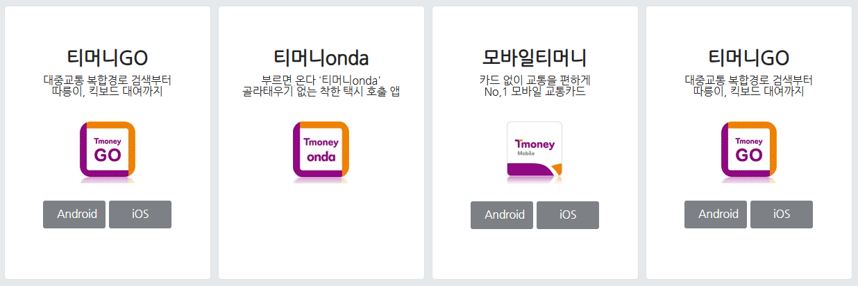 가장 편리하고 손쉬운 방법은 티머니 전용 앱을 이용하는 것입니다. 스마트폰의 구글 플레이스토어나 애플 앱스토어에서 '티머니' 앱을 무료로 다운로드할 수 있습니다.