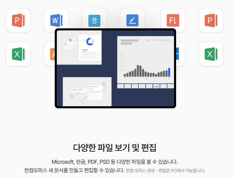 이 웹 버전은 데스크톱 버전에 비해 일부 고급 기능이 제한될 수 있지만, 기본적인 문서 작성과 편집에는 충분합니다. 또한 인터넷만 연결되어 있다면 어디서든 접근할 수 있어 편리합니다.