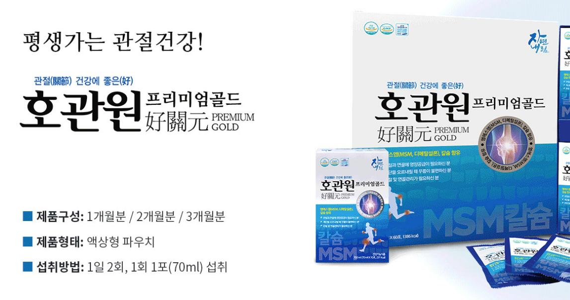 이 두 성분의 조합은 호관원 프리미엄을 통해 관절 건강을 위한 종합적인 지원을 받을 수 있음을 의미합니다.